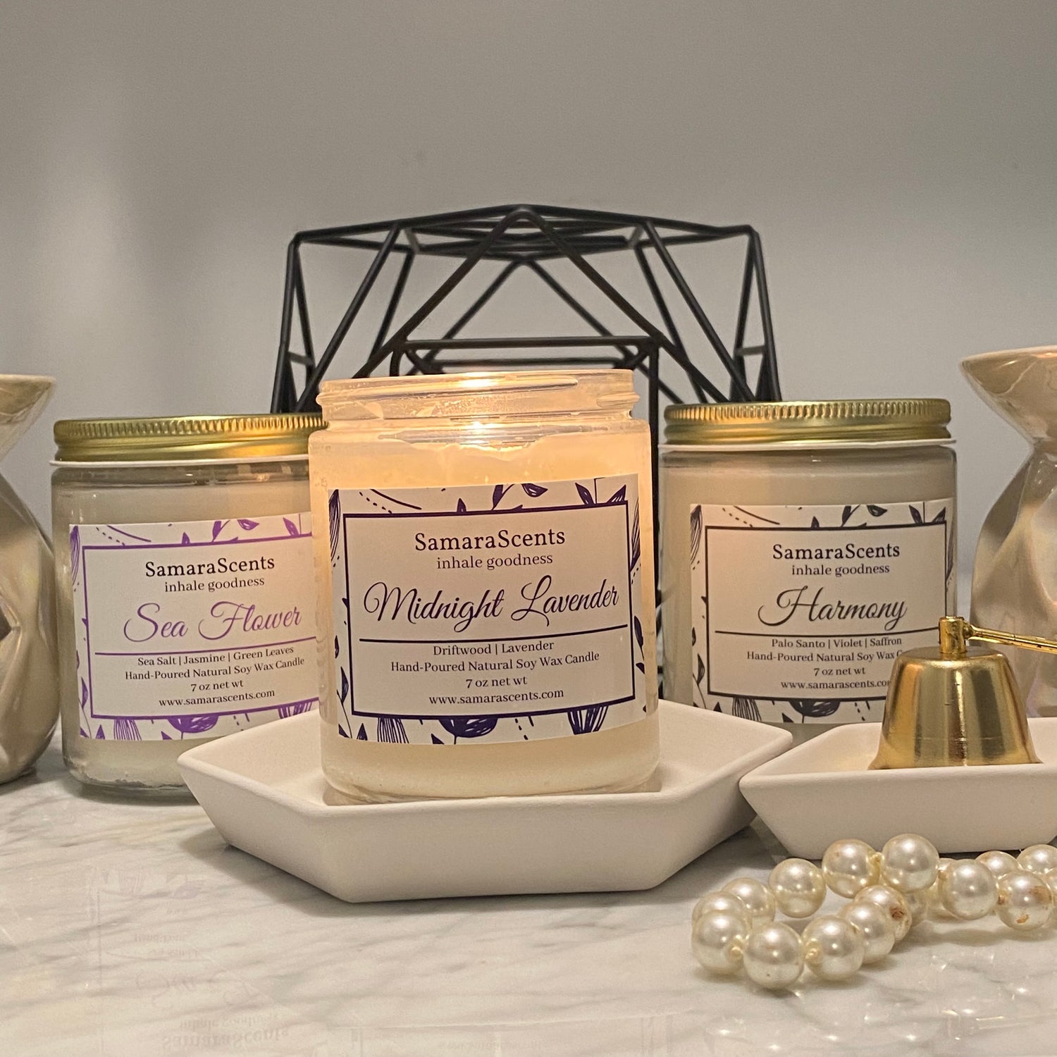 At SamaraScents, our goal is to offer a wide range of handcrafted home fragrance products that can transform your day, elevate your mood, and enhance your surroundings. Our collection of candles, wax melts, and room sprays feature unique scents that can invigorate your senses, promote relaxation, and transport you to exotic destinations. With our products, you can create a personalized ambiance that reflects your style and complements the decor of your home